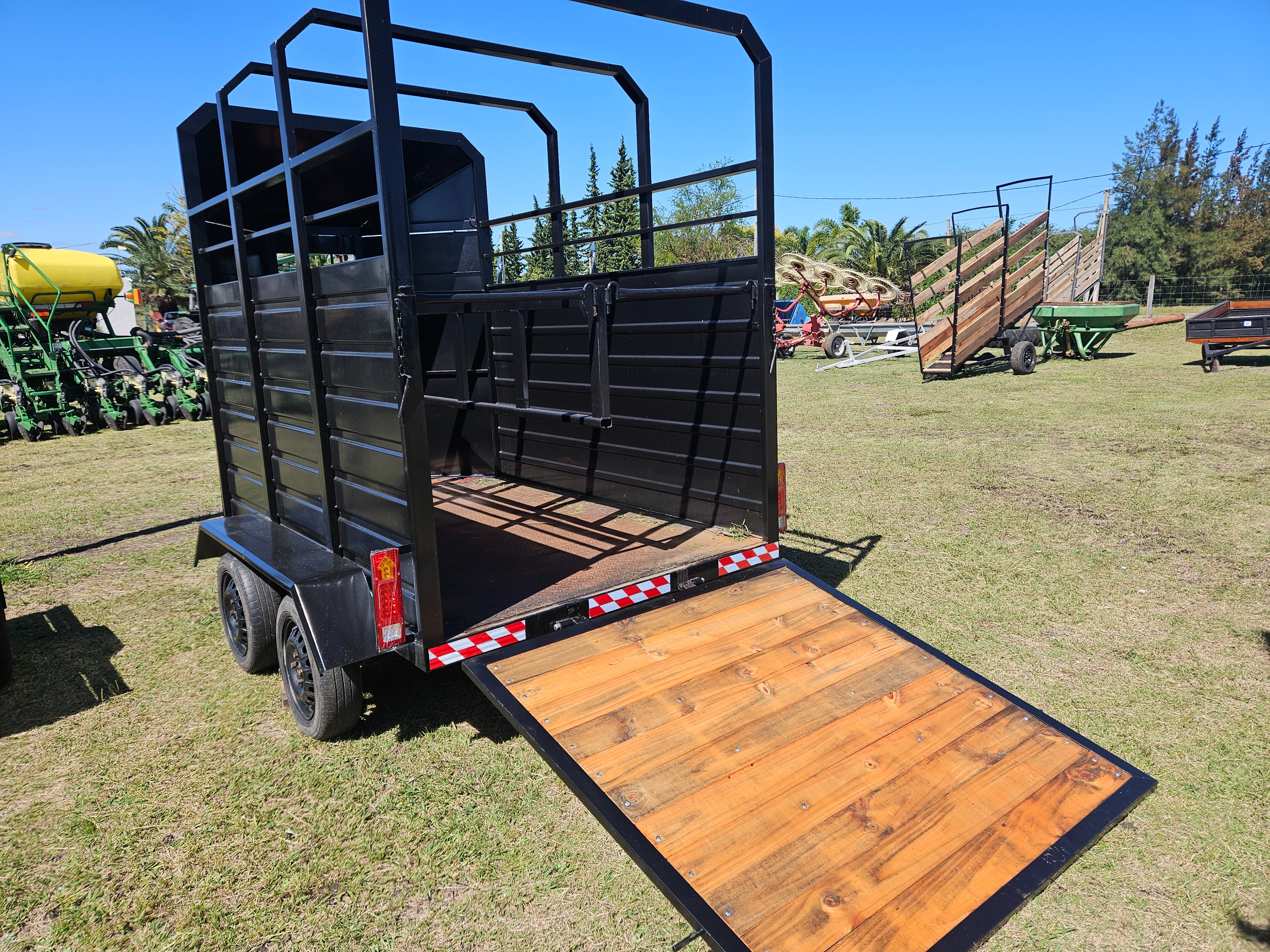 - Descripción: Trailer para dos caballos NUEVO con piso de chapa y rampa, instalación eléctrica y luces. De 3,5q mts. de largo x 2,14 mts. de ancho y 2,07 mts. de alto.