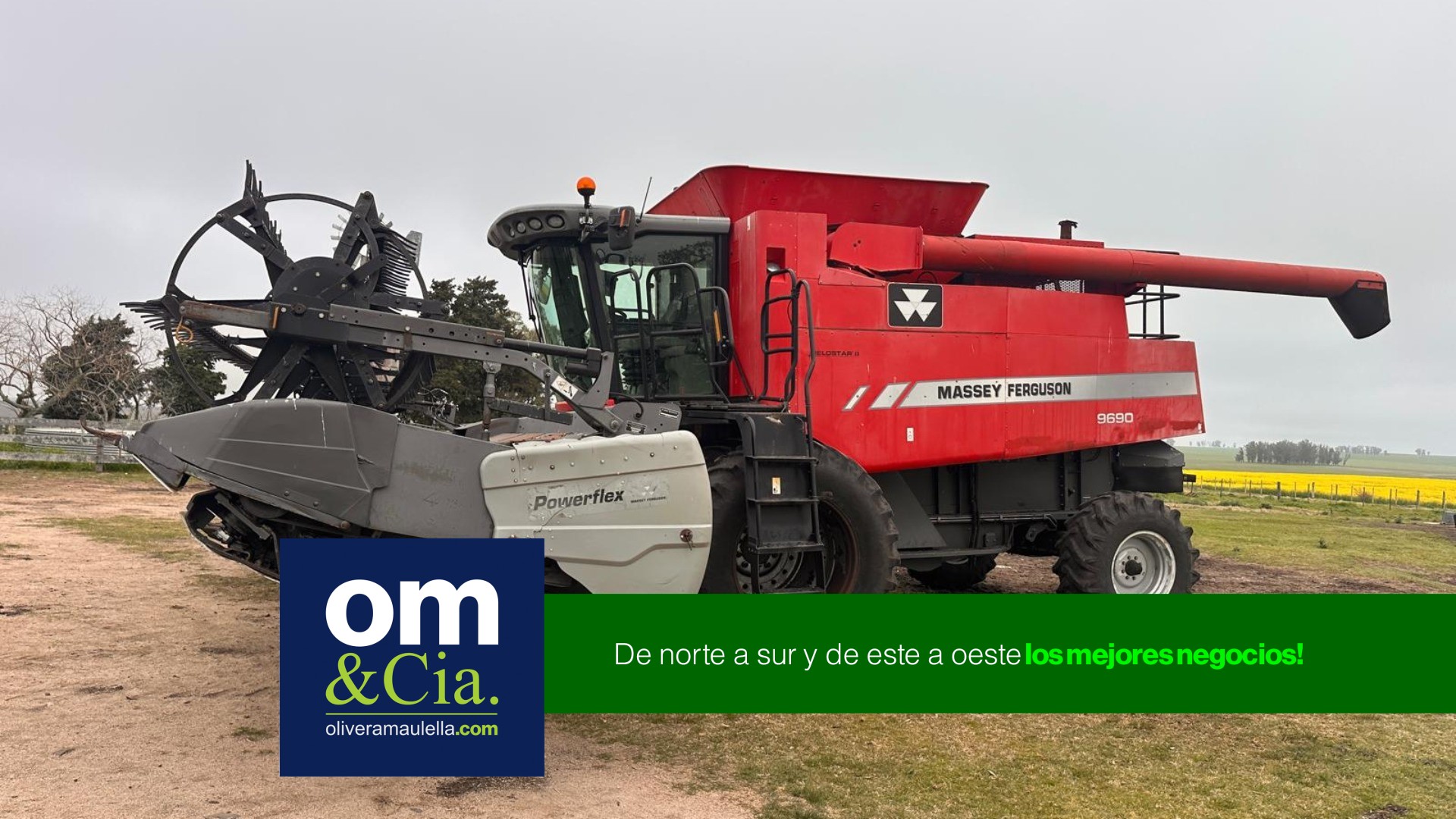 - Descripción: Cosechadora Massey Fergunson 9690 axial 4x2 de 325 hp . Cabina con aire . Horas de motor : 5309 . Horas de trilla : 3468 .Rodado delantero Dual 20.8x38 y trasero 18.4x26. Plataforma 30 pies de lona (Algeris) y carro