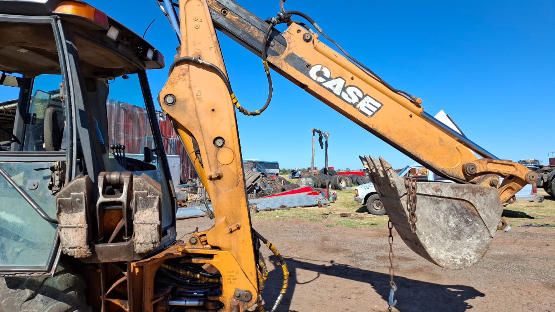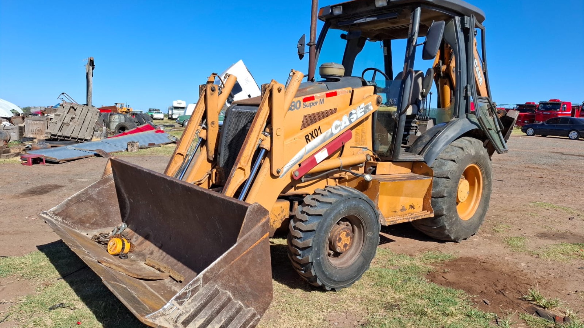 - Descripción: Retroescavadora Case 580 Súper M . Motor Cummins de 4.5 litros de 85 hp de potencia . 12.500 horas de uso. Balde común de 3/4. Retro con extensible . 4x4 . Cabina sin aire. Transmisión manual de 4 velocidades adelante y 4 atrás , inversor electro- hidráulico .