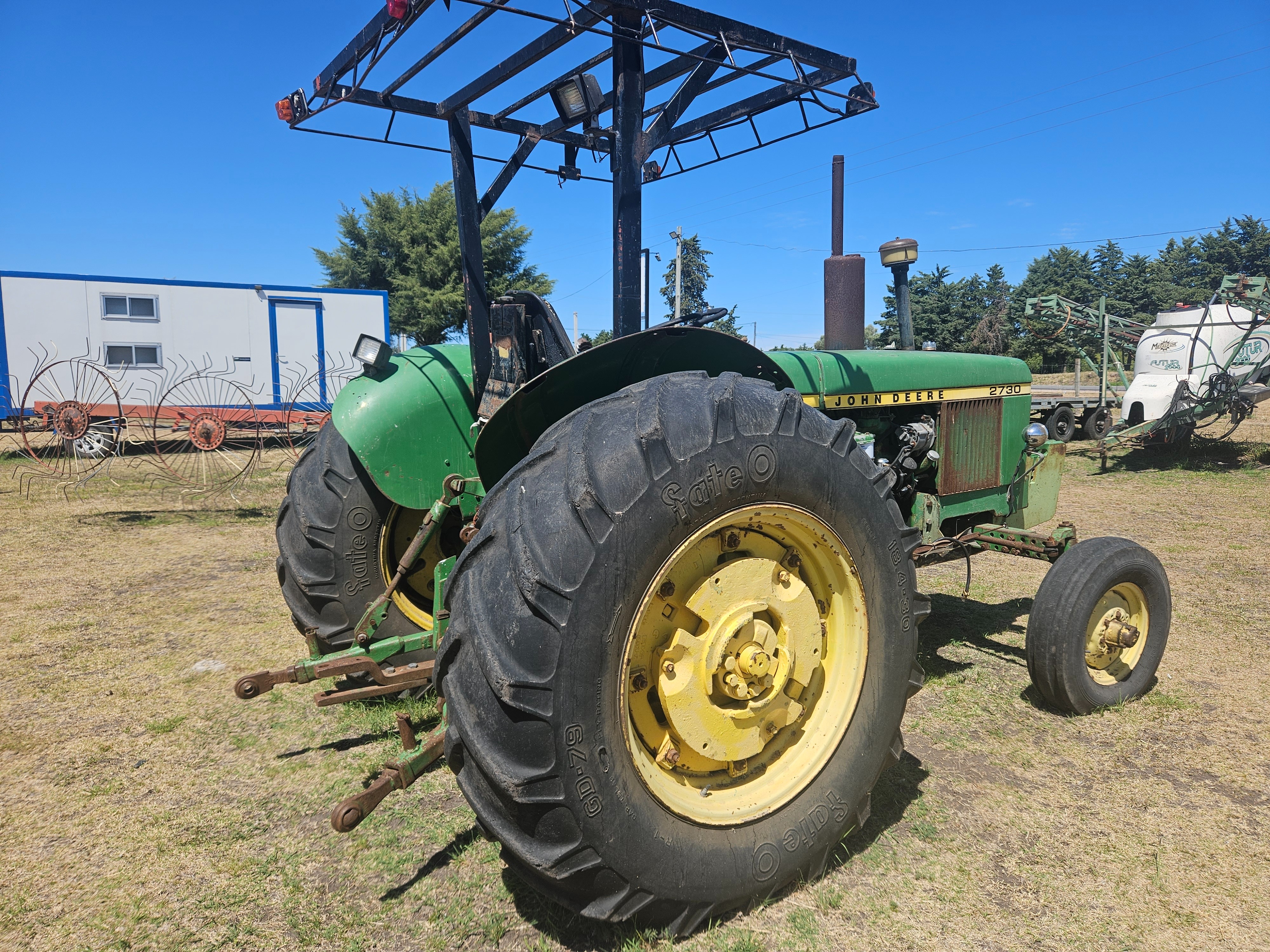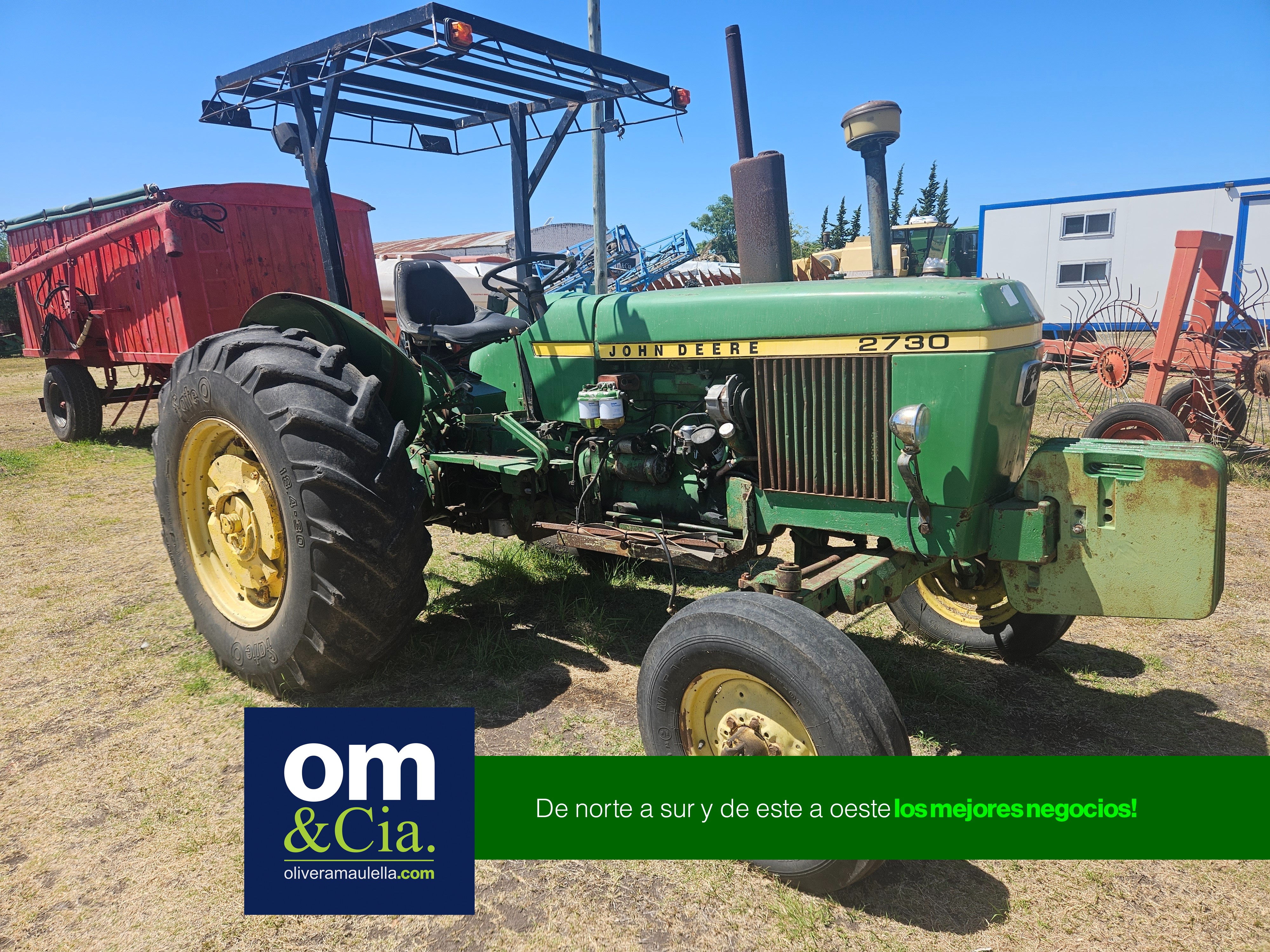 - Descripción: Tractor JOHN DEERE Mod. 2730 4 x 2 transmisión 8 x 4, levante en tres puntos y toma de fuerza 540 RPM, potencia aproximada de 70-75 HP. Transmisión: Mecánica, 8 marchas hacia adelante y 4 hacia atrás